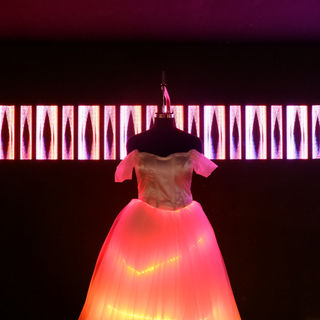 The "SABDA-Harmony Hues " gown is the epitome of style and technology combined. Designed as a component of our final class, Building Block 9, this innovative dress combines fashion and music in a seamless way. Imagine a dress that moves to the beat of the song, changing its color scheme to match the beats and melodies. The outfit is made with state-ofthe-art fabric technology and incorporates integrated sensors that record the surrounding noise. These sensors translate the musical frequencies into an amazing rainbow of colors that flow smoothly over the flowing form of the gown. This project highlights the endless possibilities at the convergence of fashion and technology, as well as my creative expertise as a fashion student.